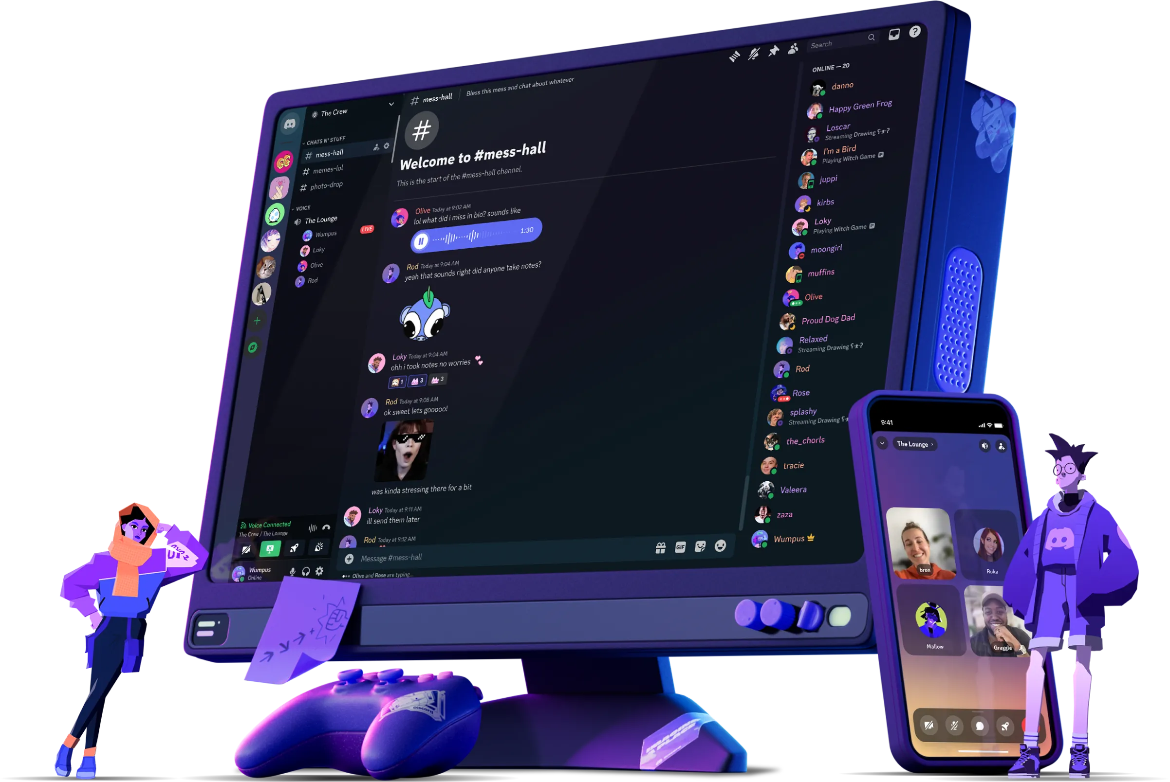 无论是在电脑、手机还是主机上,您都可以轻松地使用 Discord 与朋友们欢聚一堂。您还可以在不同设备之间无缝切换,并使用工具来管理多个群聊。